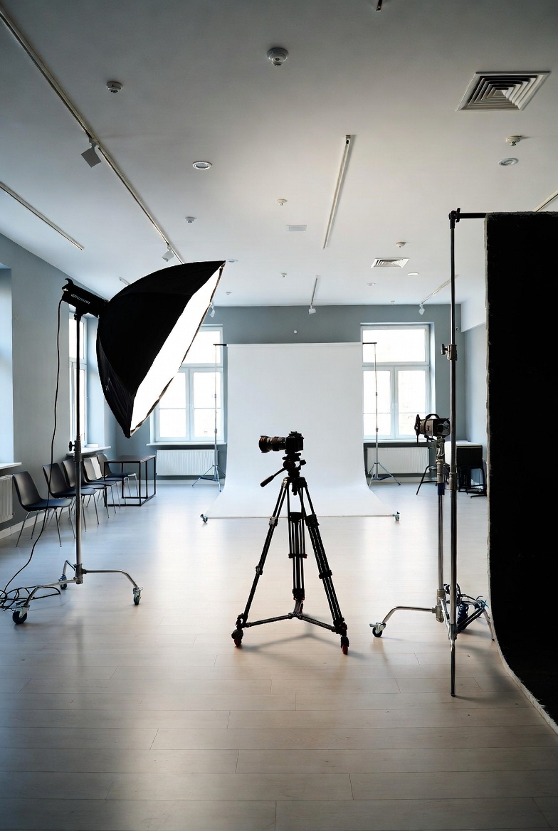 Przestronna sala z profesjonalna cyklorama 6x4m. Idealna do sesji modowych, portretowych i produktowych.