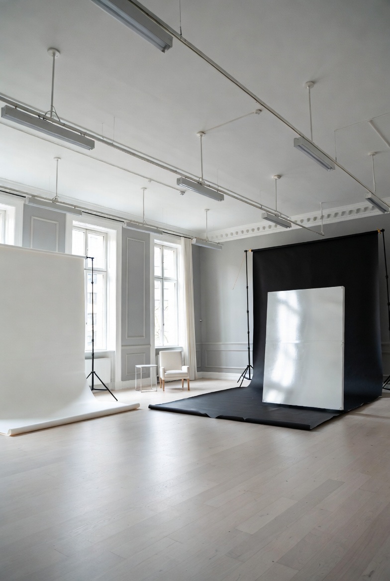 Kompaktowa sala wyposarzona w stoly bezcieniowe i obrotnice 360. Idealna do fotografii produktowej.